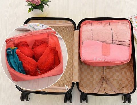 By using packing cubes, you can pull that specific cube out of your bag to get exactly what you need instead of flipping through piles of clothes in a suitcase.All cubes have a mesh panel so you can see what's inside each one.